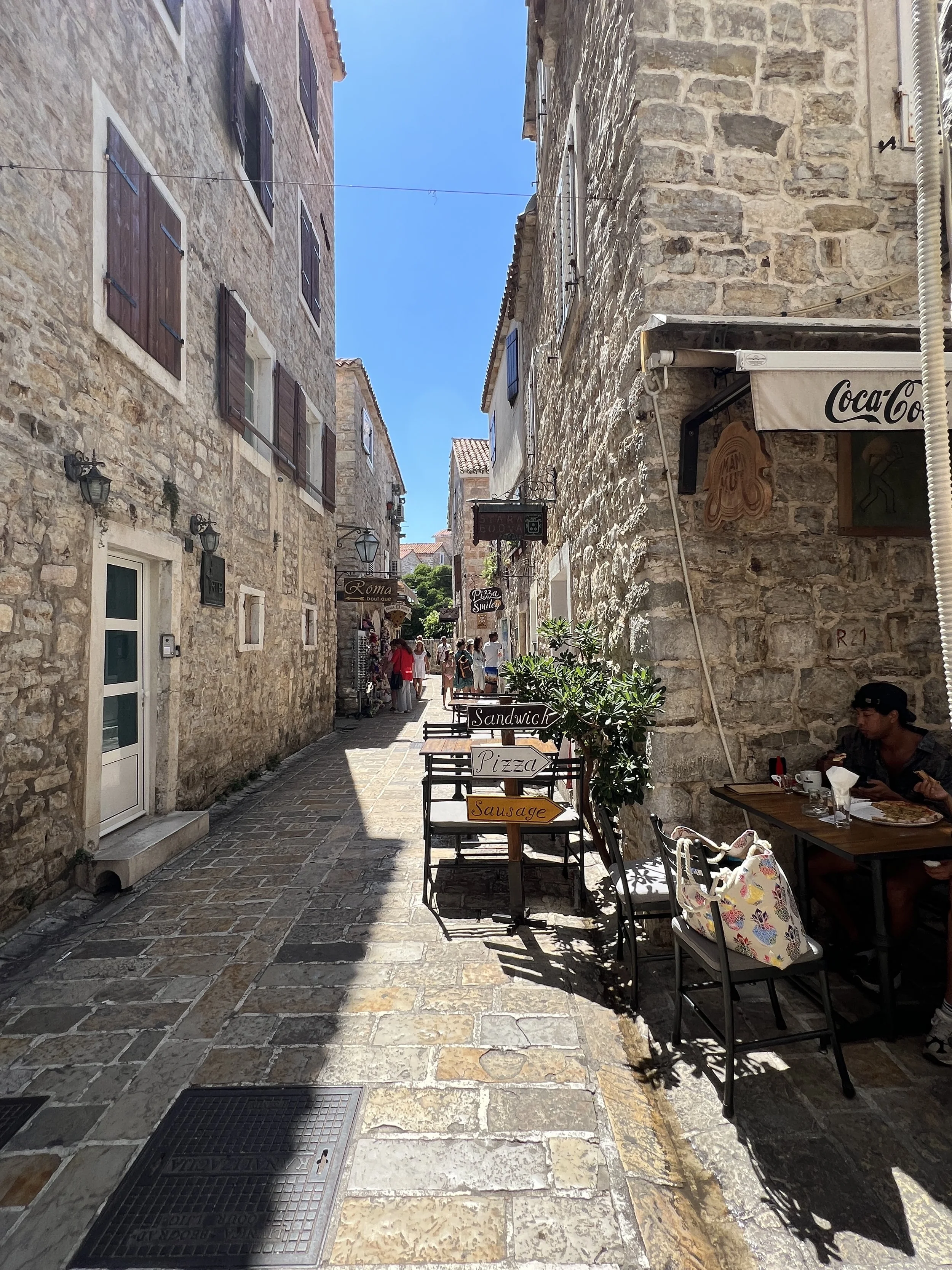 Old Town Budva is not driveable as it is an old Medieval town which makes it nice to be able to explore by foot. It is really pretty and the buildings and cobblestone streets make it feel like you stepped back in time a bit. However, the cafe scene and yachts bring you right back into the present day and remind you that you are indeed experiencing European Summer as its finest!